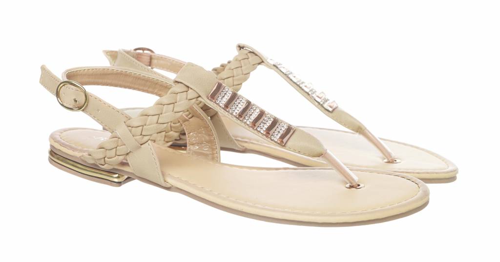 Deze met kleine steentjes gesierde slippertjes zullen je voeten doen stralen de aankomende zomer.